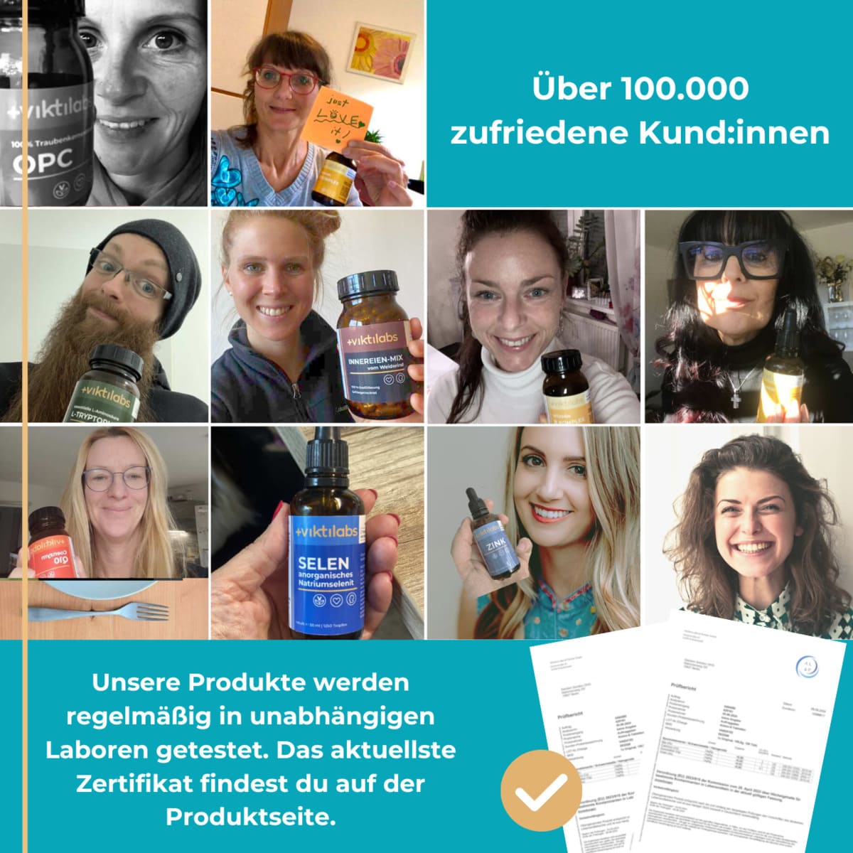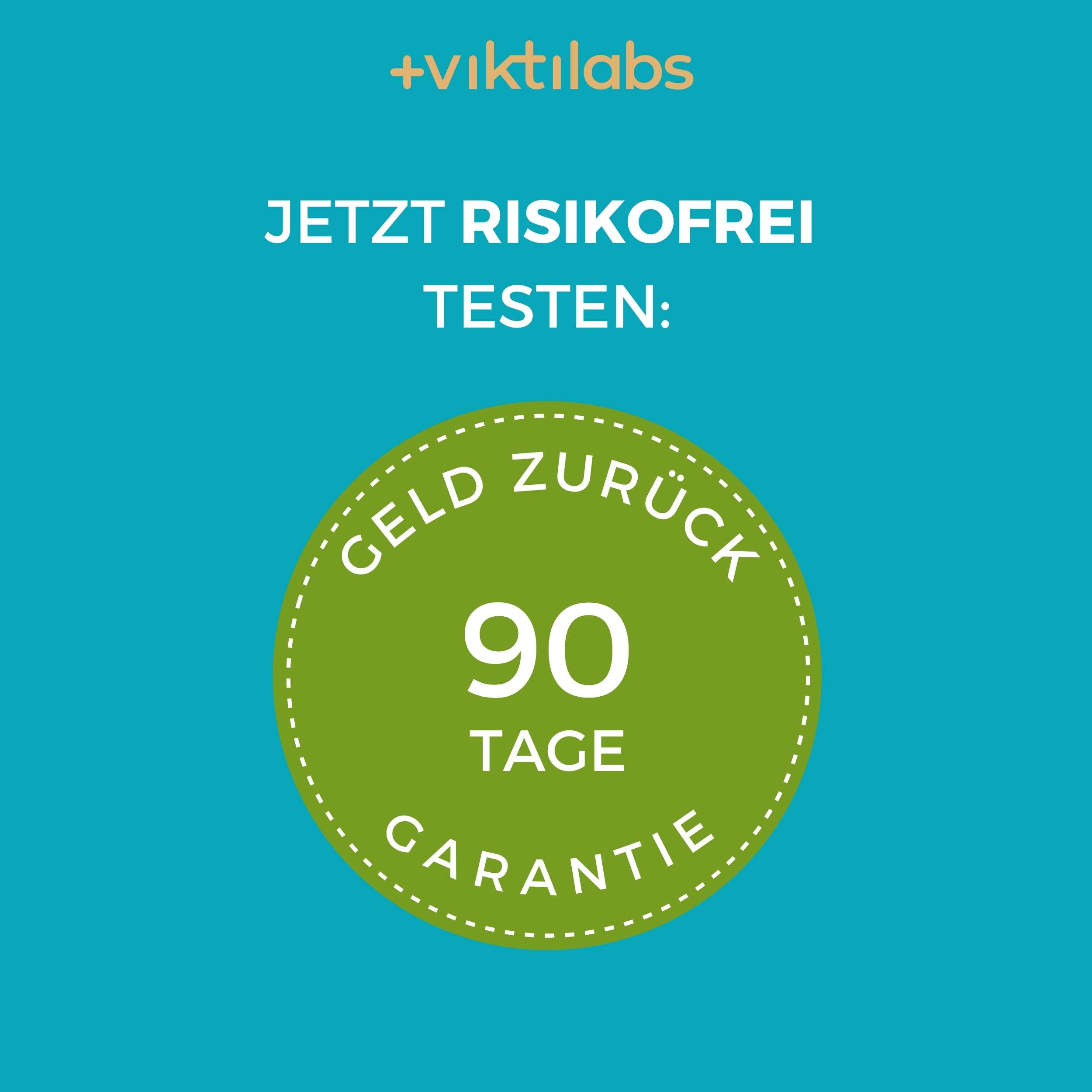 *Die 90-Tage-Geld-zurück-Garantie gilt nur für die erste Bestellung je Kunde und maximal für drei Packungen pro Produkt. Es darf nur eine Packung geöffnet sein. Die restlichen Produkte müssen originalverpackt, unbenutzt und unbeschädigt zurückgesendet werden. Die Garantie kann pro Kunde nur einmalig in Anspruch genommen werden. Bei wiederholter Nutzung behalten wir uns vor, die Erstattung abzulehnen. Alle Garantiebedingungen findest du hier: Viktilabs Garantie