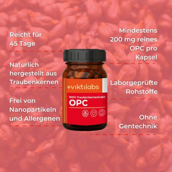 - mindestens 200 mg reines OPC pro Kapsel