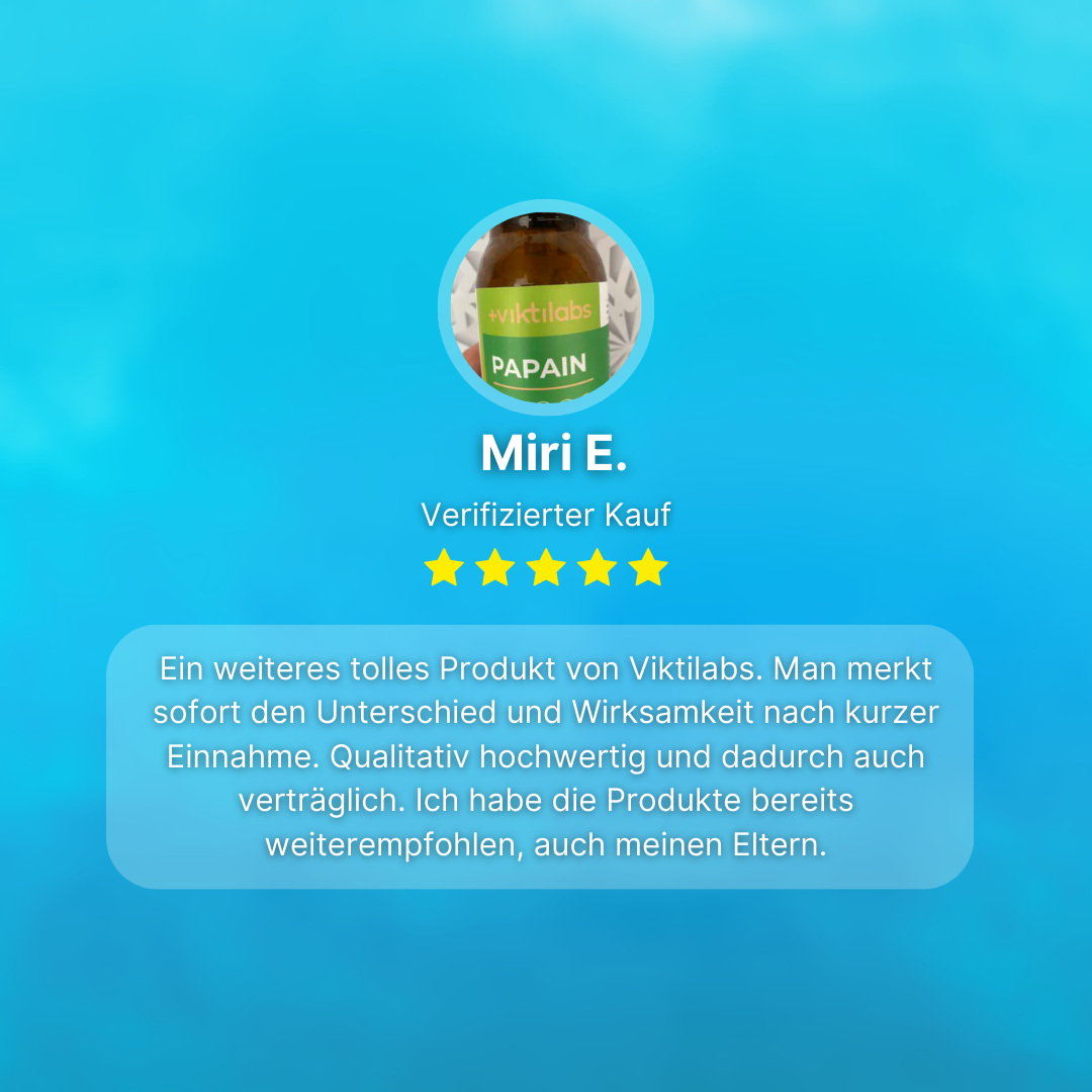 - Die Sicherheit, das unabhängige Experten und über 14.000 Kundinnen auf die Papain Kapseln schwören.