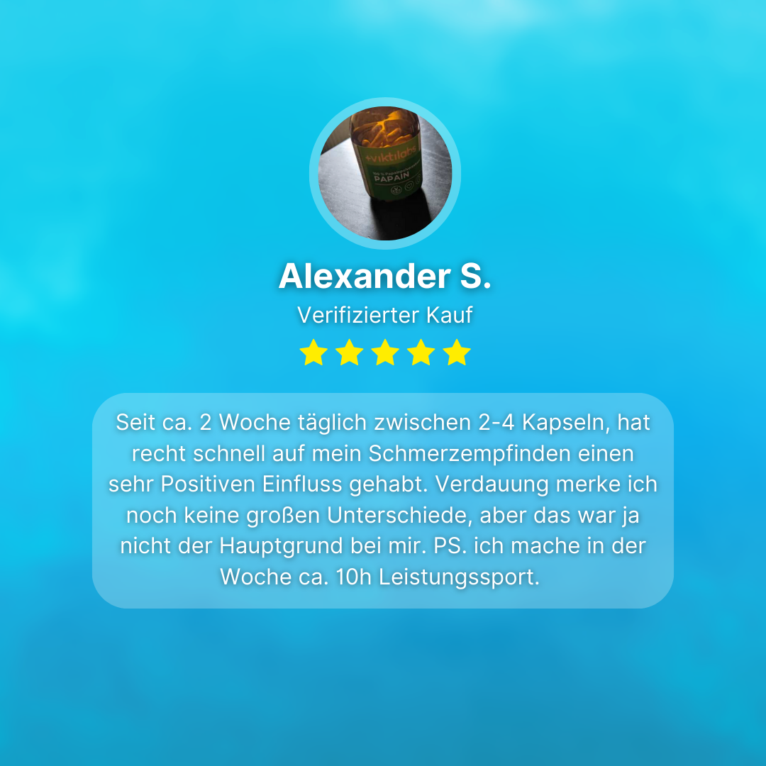Seitdem ich die Papain Kapseln von Viktilabs nehme, fühle ich wesentlich fitter. Ich habe das Gefühl, weniger oft krank zu werden. Ich nehme die Kapseln definitiv weiter!!