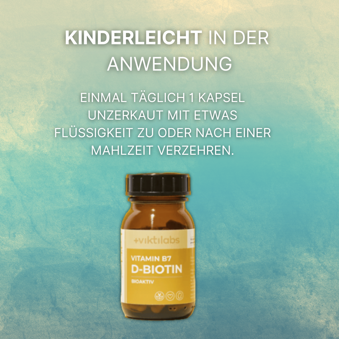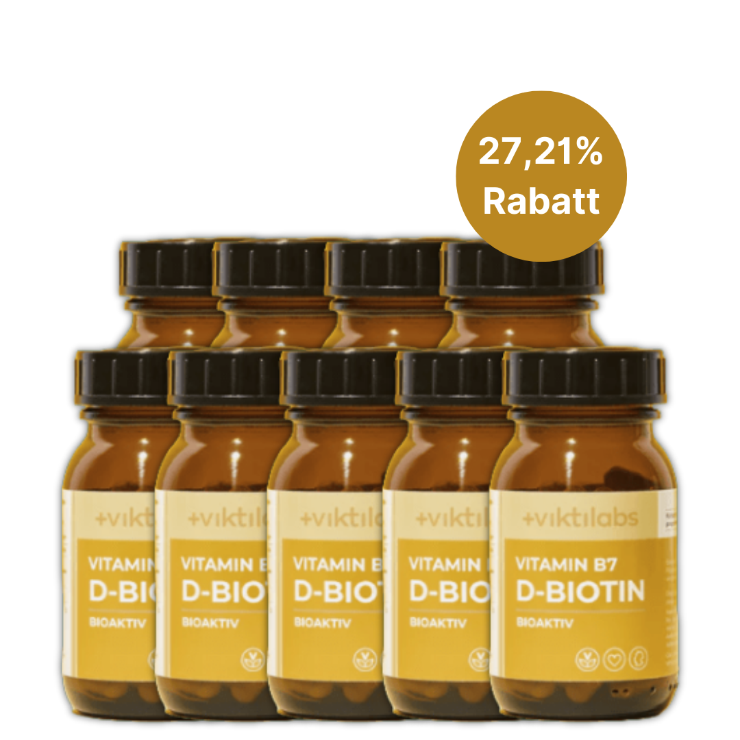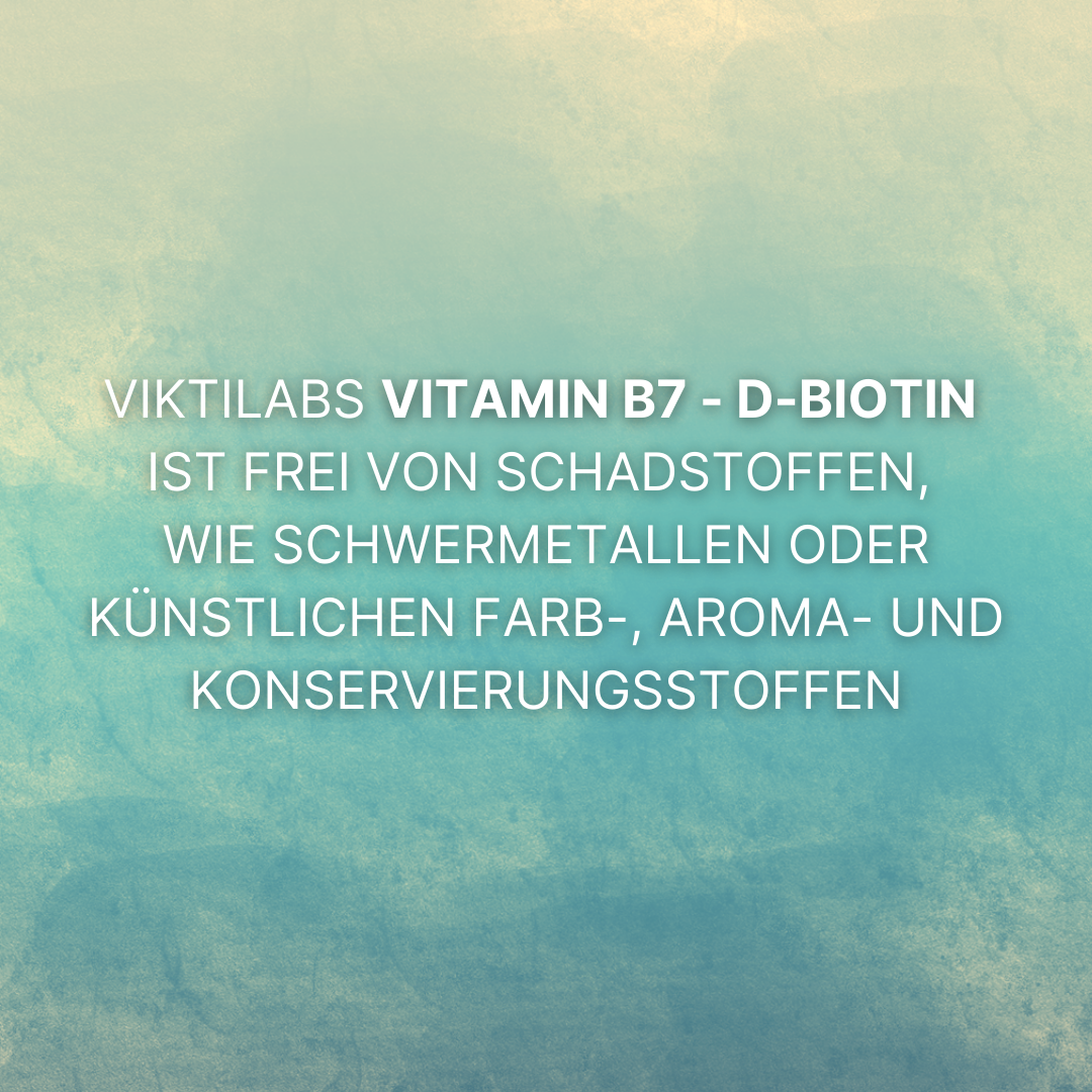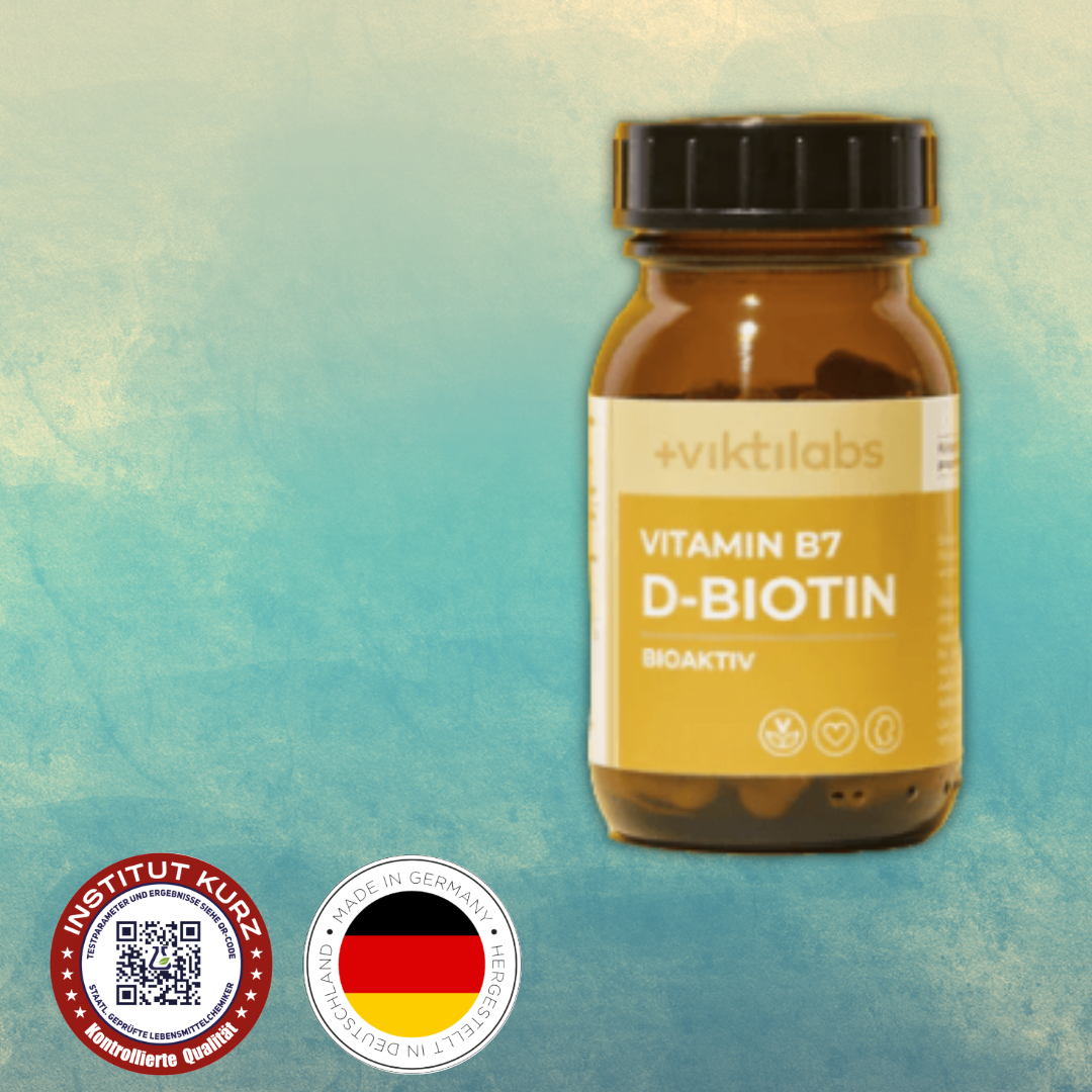 Sichere dir noch heute das hochwertige Viktilabs Vitamin B7 für eine verbesserte Haut, kräftigere Haare, stärkere Nägel, optimierten Stoffwechsel, gestärkte Nerven, regulierten Blutzucker und generelle Zellgesundheit.