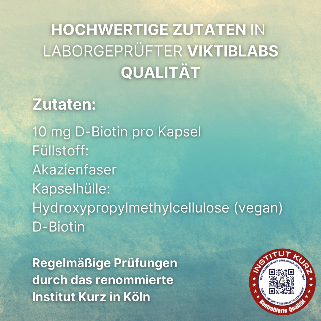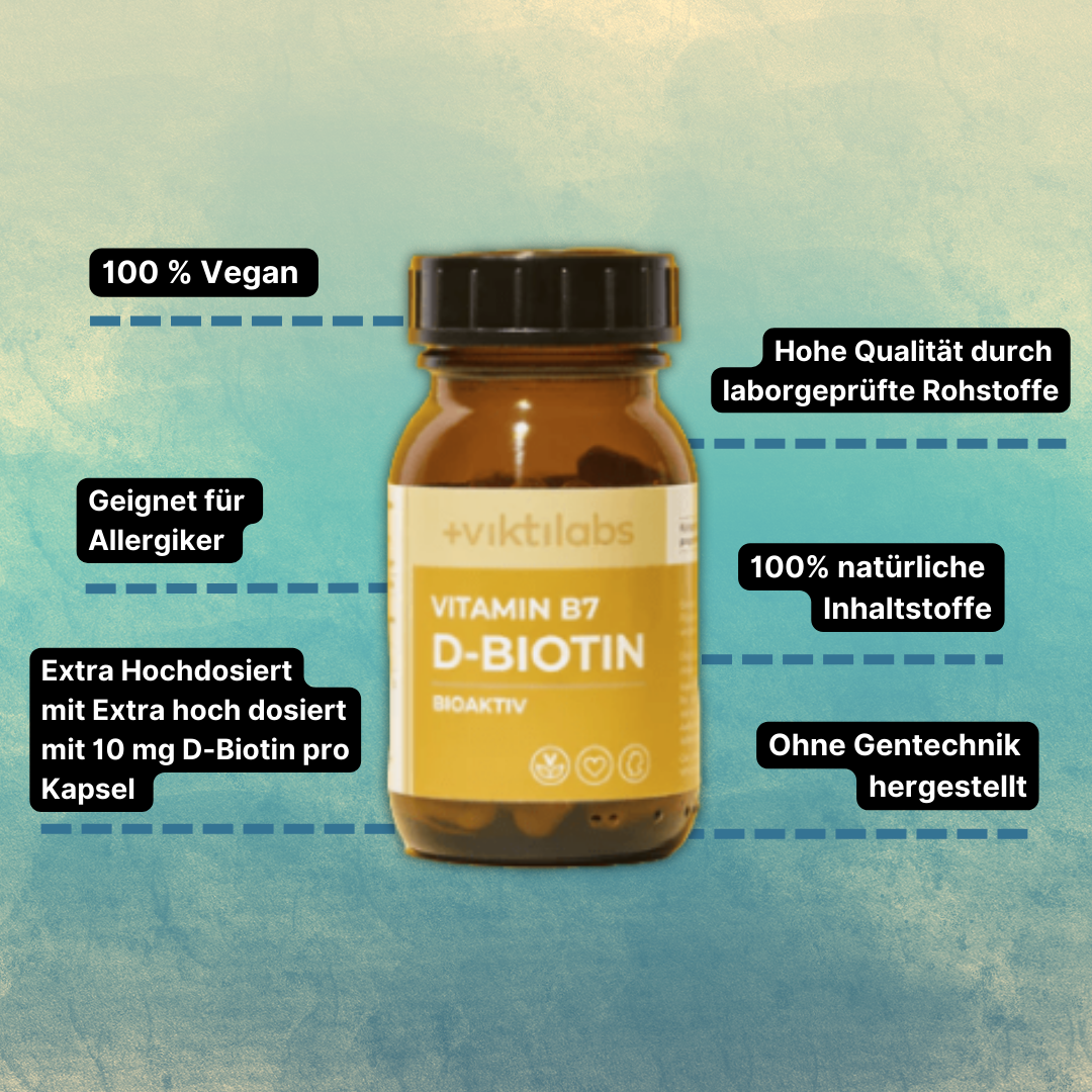 Sichtbare und spürbare Ergebnisse bereits nach wenigen Wochen mit den Vitamin B7 (Biotin) Kapseln von Viktilabs® (vegan, hochdosiert, pharmazeutische Qualität dank laborgeprüfte Rohstoffe )